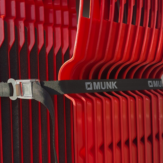 Der MUNK Rollcontainer mit einer kompakten Höhe unter 2 m fasst 48 gerade Elemente der Hochwasserbarriere PHÖNIX mit Stauhöhe 500 mm. Aufgebaut entspricht das einer Barriere mit einer Nettolänge von etwa 30 m. Optional kann die oberste Ebene des Rollcontainers für PHÖNIX Eckstücke (innen oder außen) oder Abschlusselemente genutzt werden. Ausschlaggebend für die Beladung „on top" ist die Laderaumhöhe des Fahrzeugs.